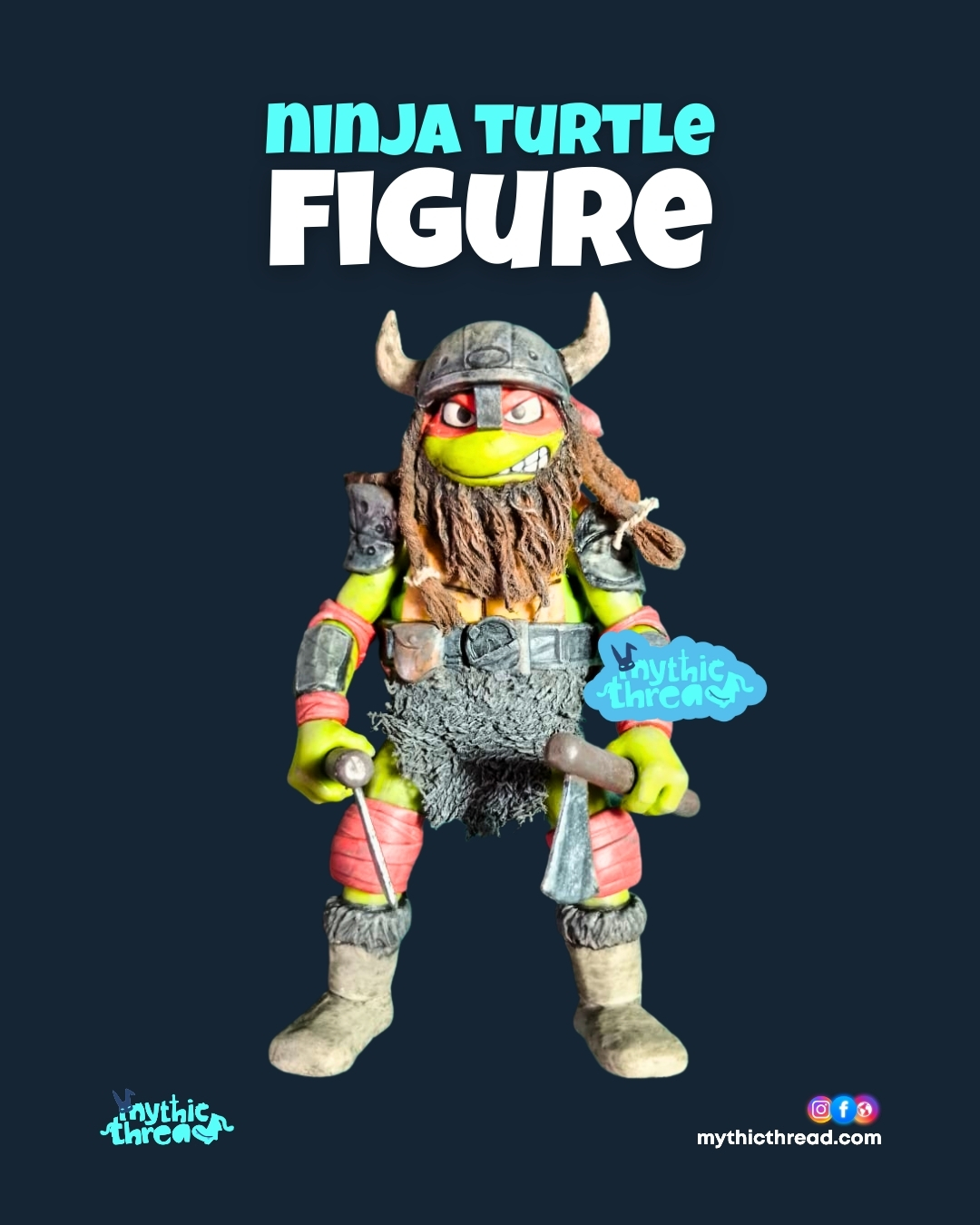 The Turtle of Valhalla. The Raphael Viking Action Figure is a unique, artisan-made masterpiece from the MythicThread workshop. Moving away from the classic sewer-dwelling aesthetic, this figure captures Raphael in a reimagined “Viking” persona—tough, grizzled, and ready for a Nordic war. Every detail, from the textured beard to the weathered armor plates, is handcrafted to deliver a bold, creative take on a beloved classic.